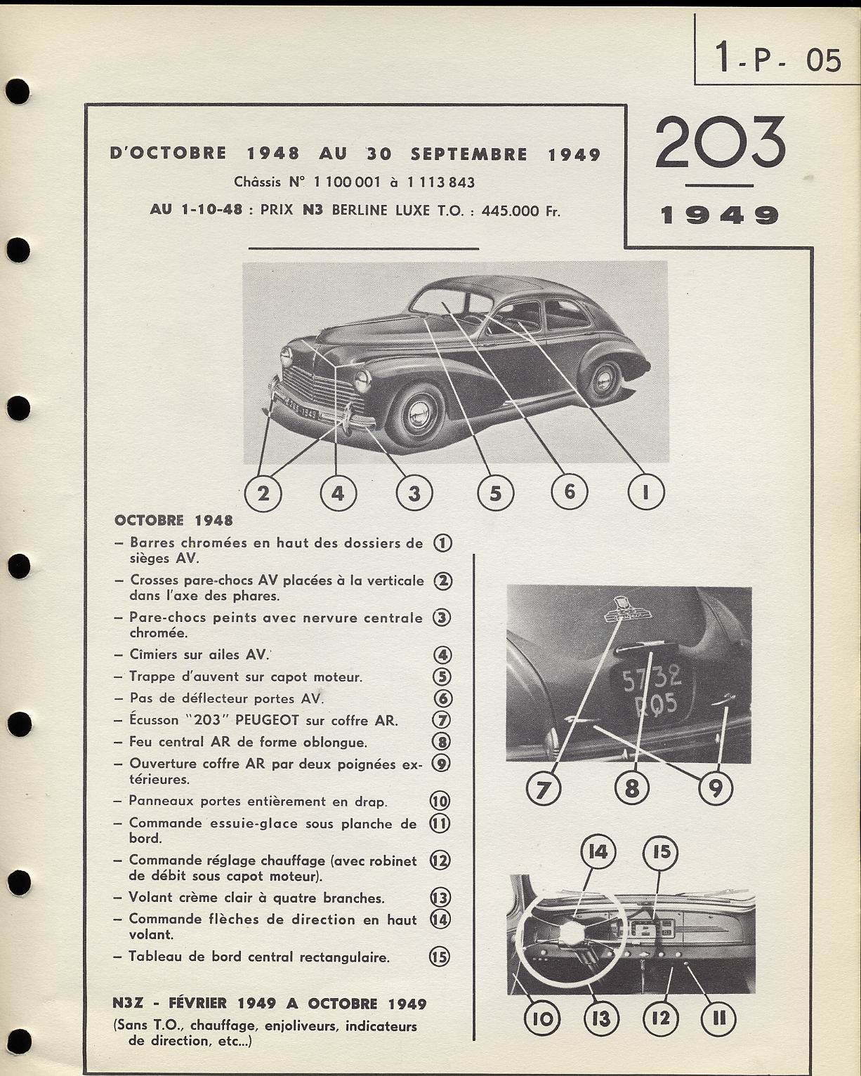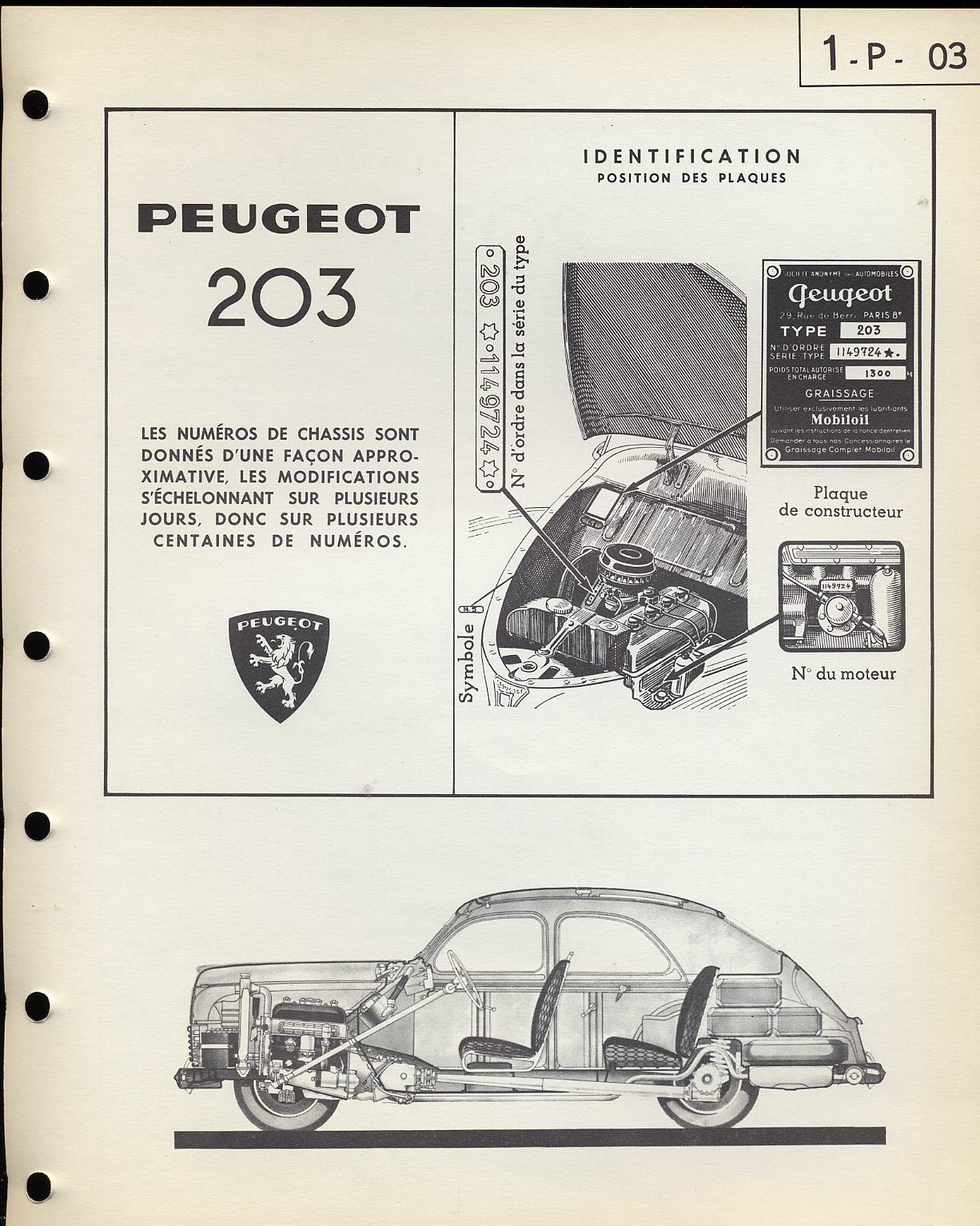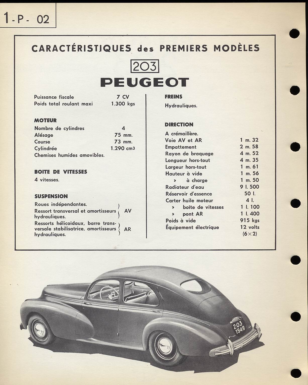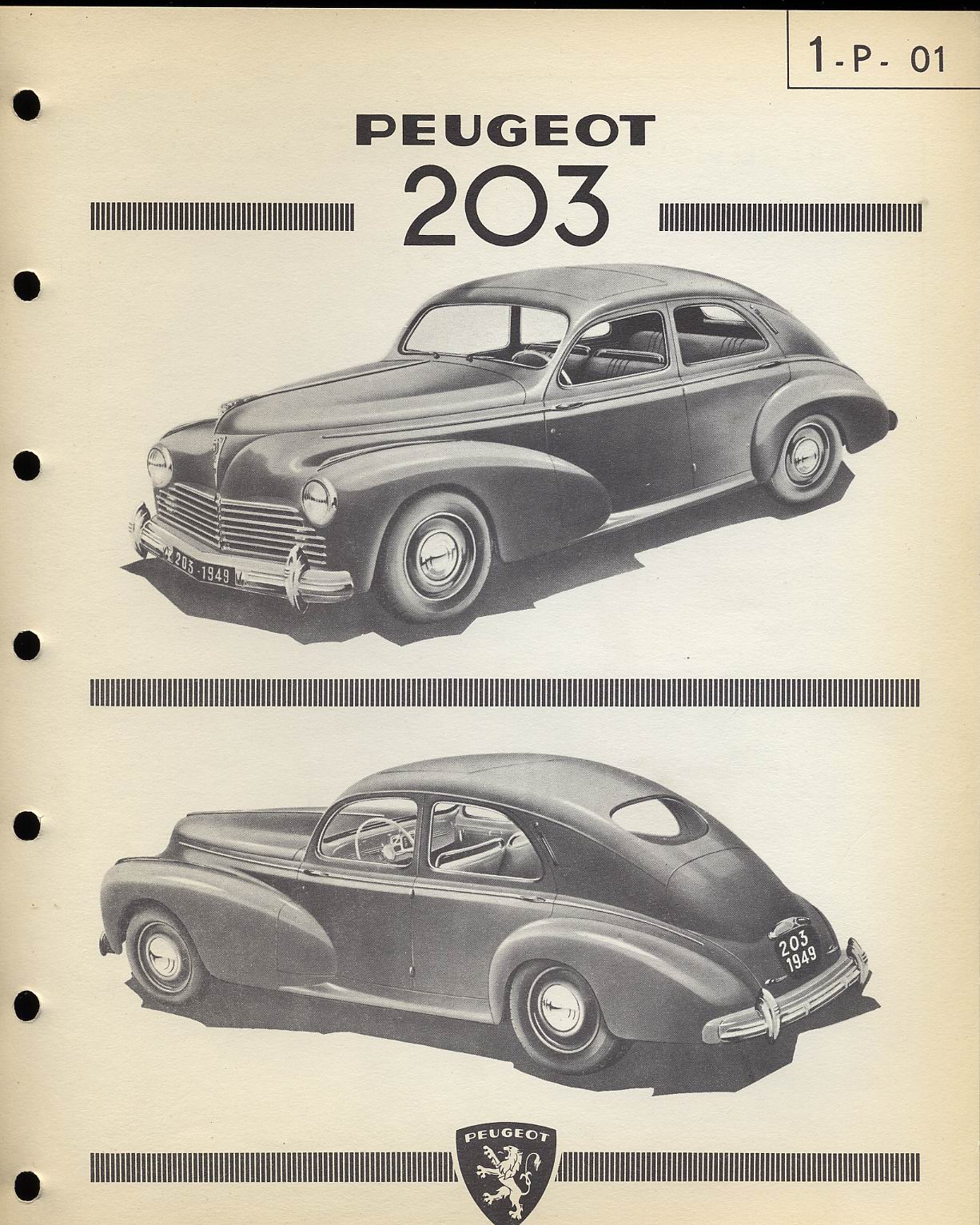 Vous trouverez ici les pages relatives à la Peugeot 203, issues d'un document réservé aux vendeurs de véhicules d'occasion de marque Peugeot. L'ensemble a été scanné par . Qu'il soit remercié pour la fourniture de ce document. Et n'hésitez pas à allez voir son forum destiné à la Peugeot 403, Station 403.