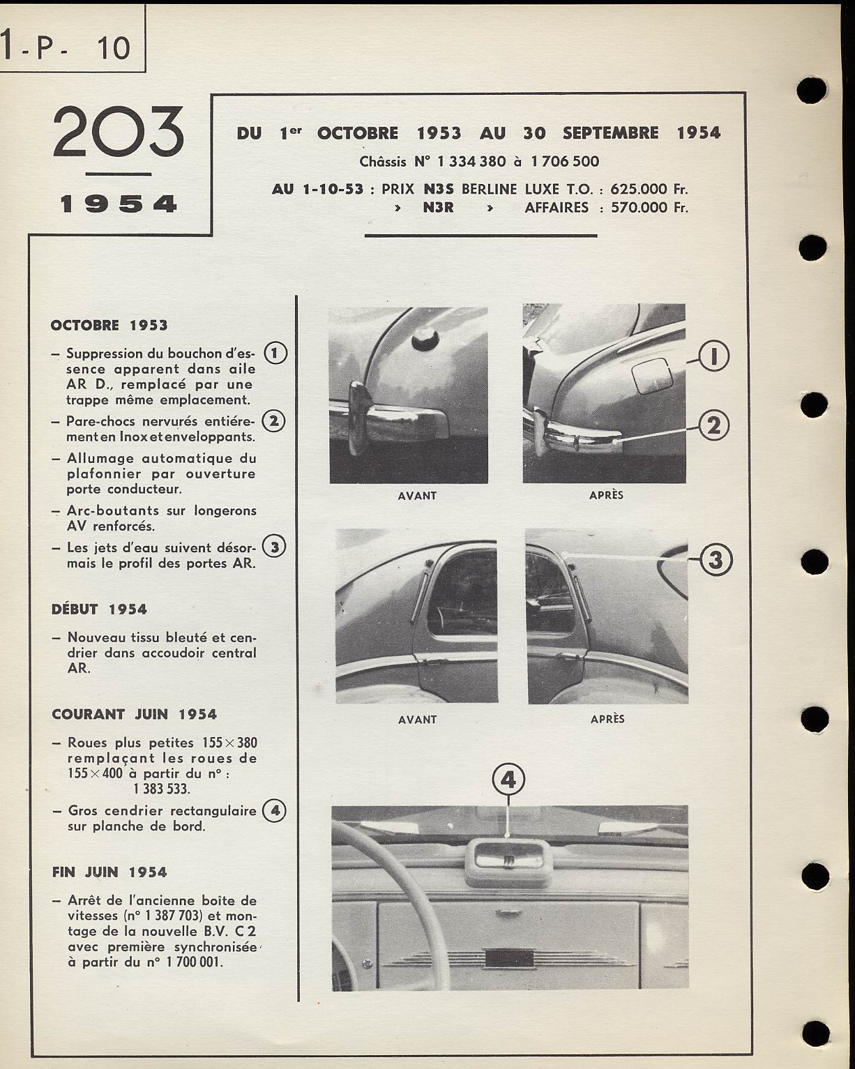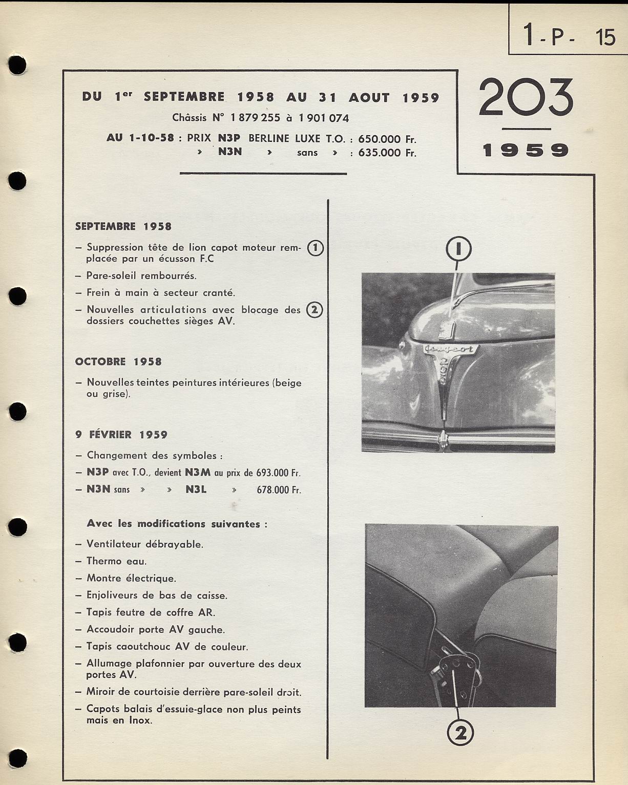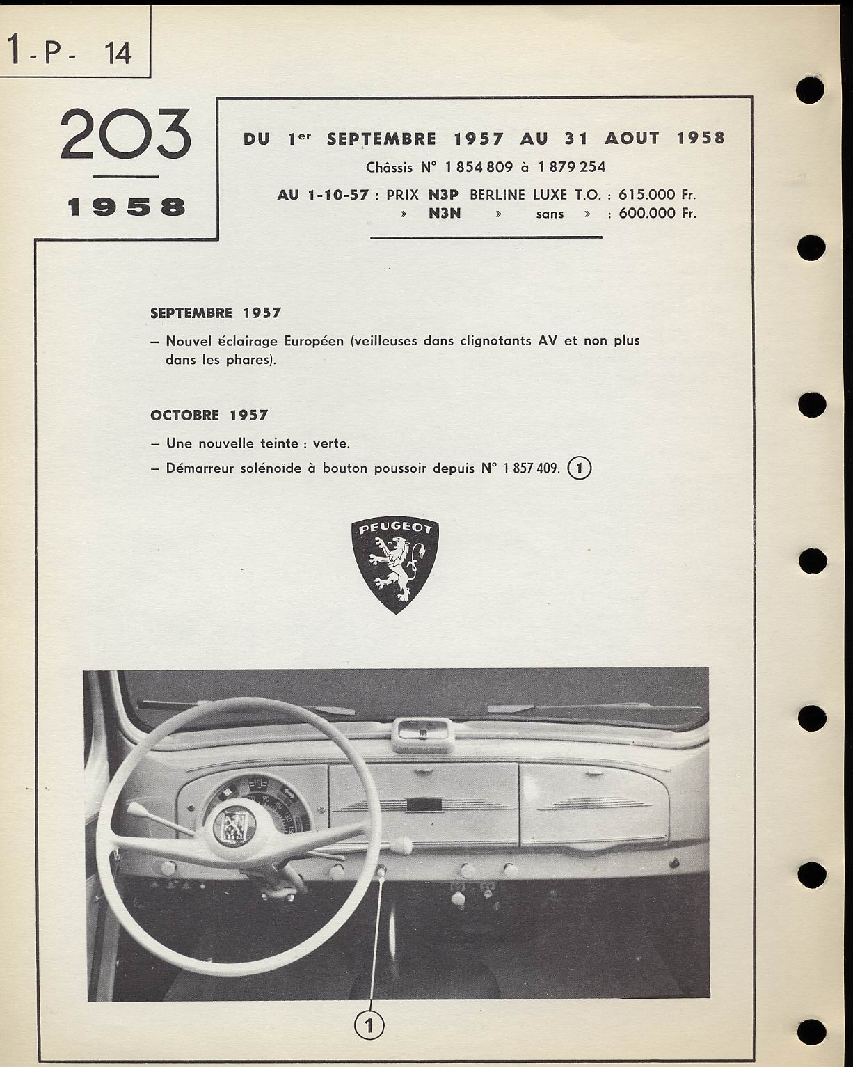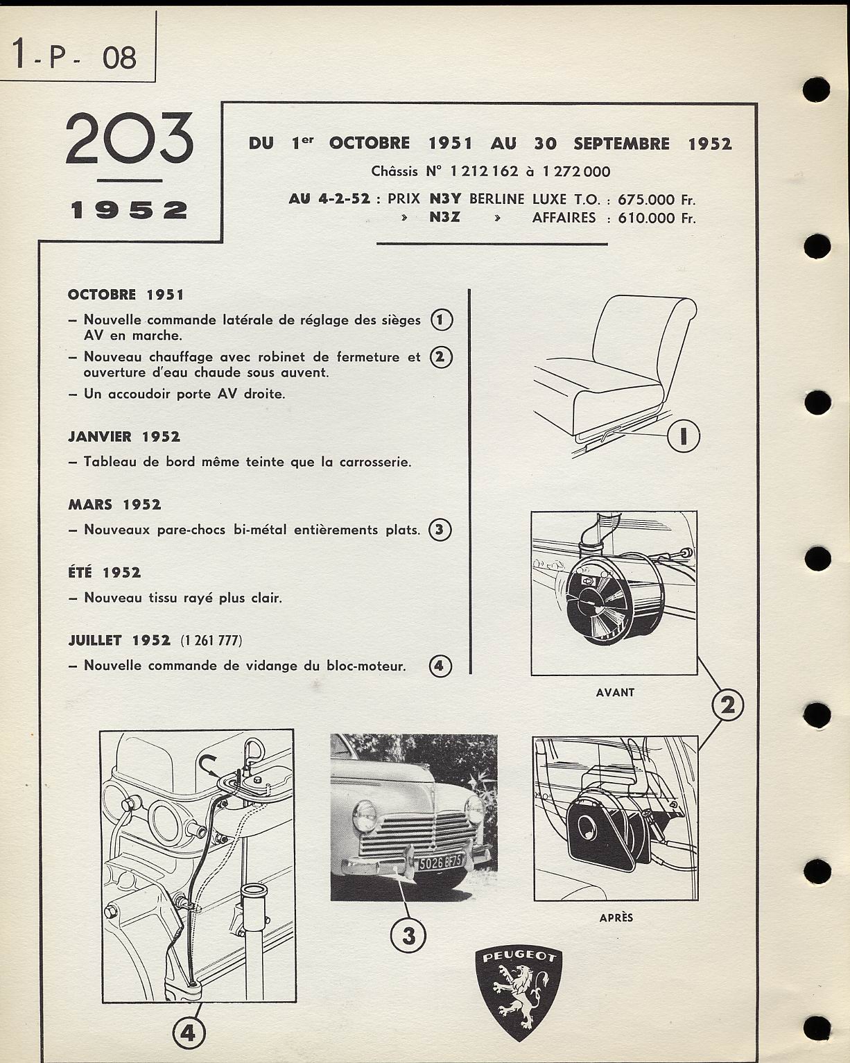 Vous trouverez ici les pages relatives à la Peugeot 203, issues d'un document réservé aux vendeurs de véhicules d'occasion de marque Peugeot. L'ensemble a été scanné par . Qu'il soit remercié pour la fourniture de ce document. Et n'hésitez pas à allez voir son forum destiné à la Peugeot 403, Station 403.