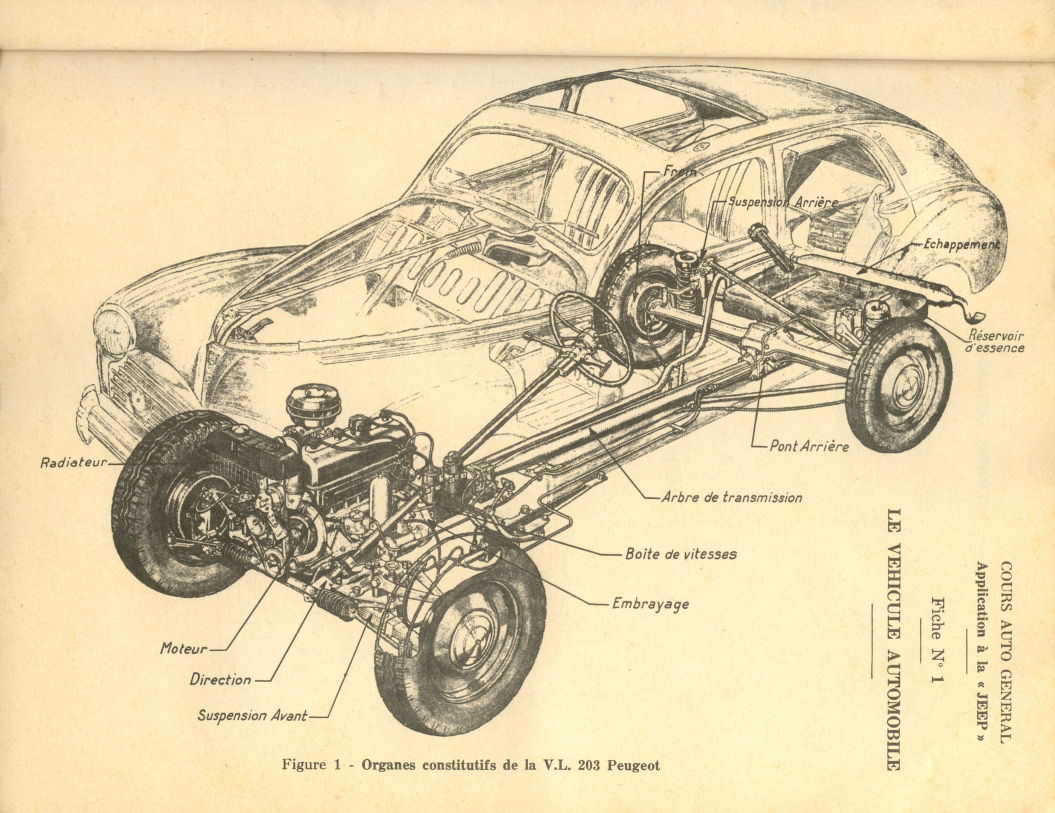 Vous pouvez télécharger le « manuel de réparation de la voiture de liaison Peugeot 203 » émanant du secrétariat d'état aux forces armées « Guerre ». Vous trouverez deux fichiers, l'un présentant le mode opératoire, l'autre les planches techniques. le Merci à pour le scan de cette documentation, et sa fourniture.