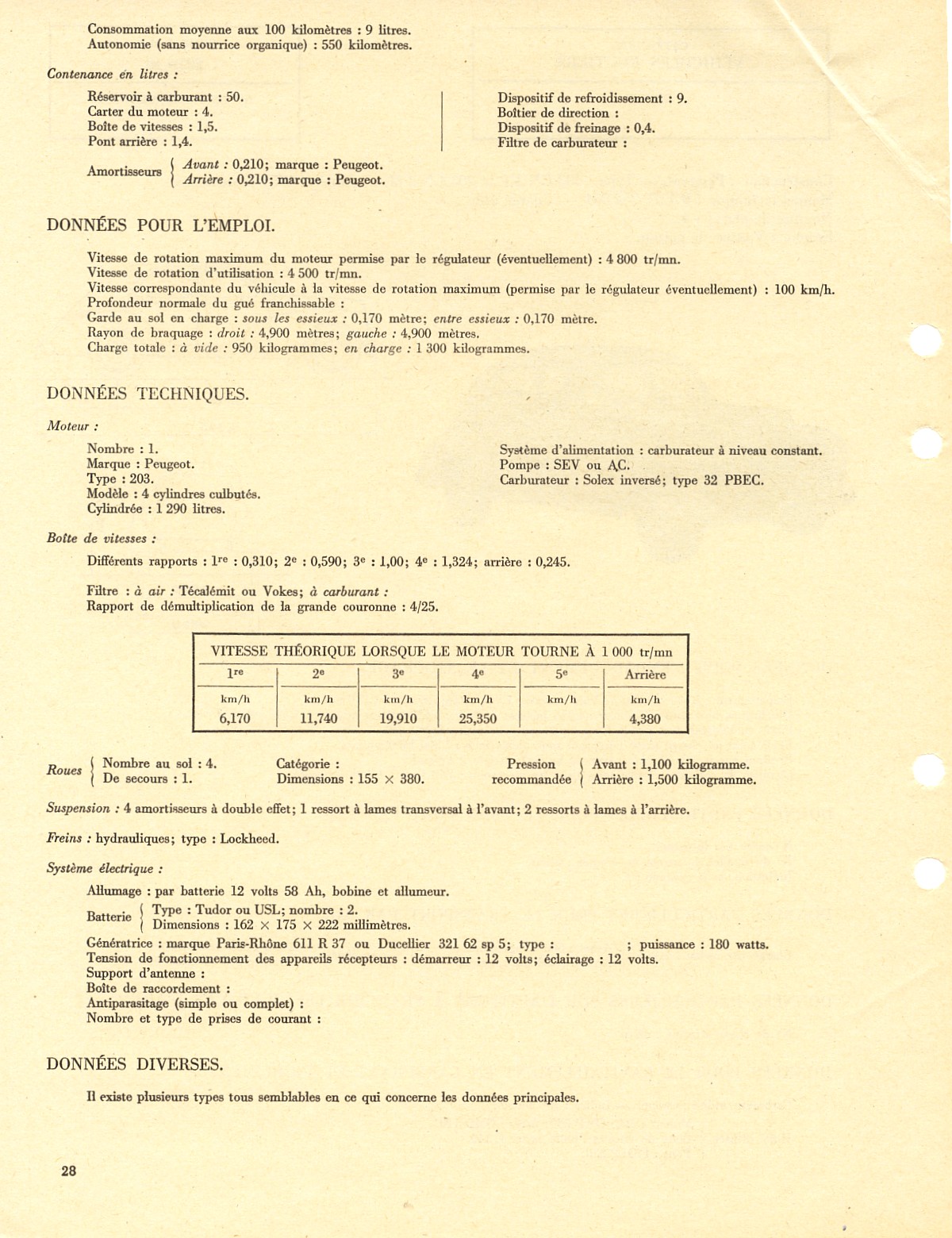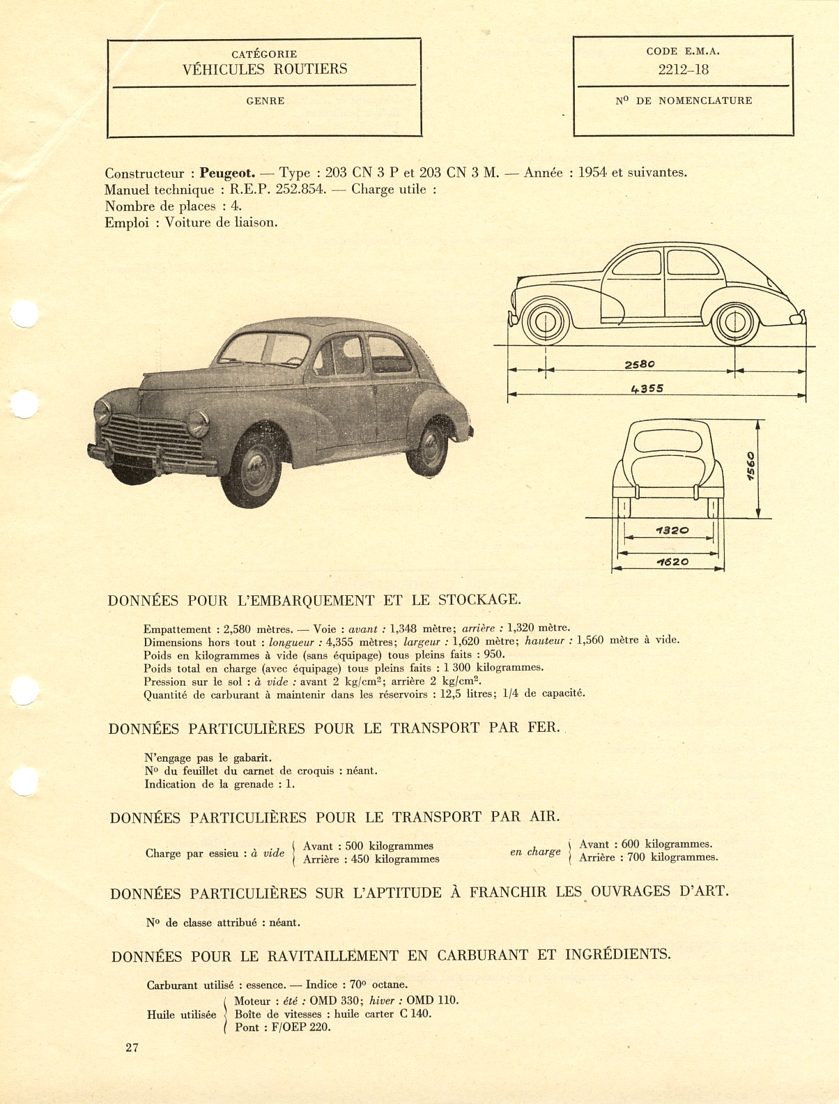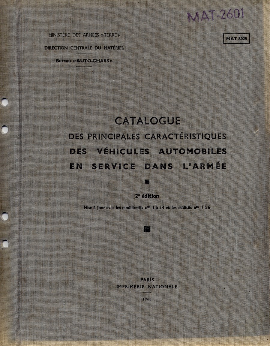 Voici des fiches sur la 203 en livrée militaire, extraites du MAT2601, ex 3025 de 1965.