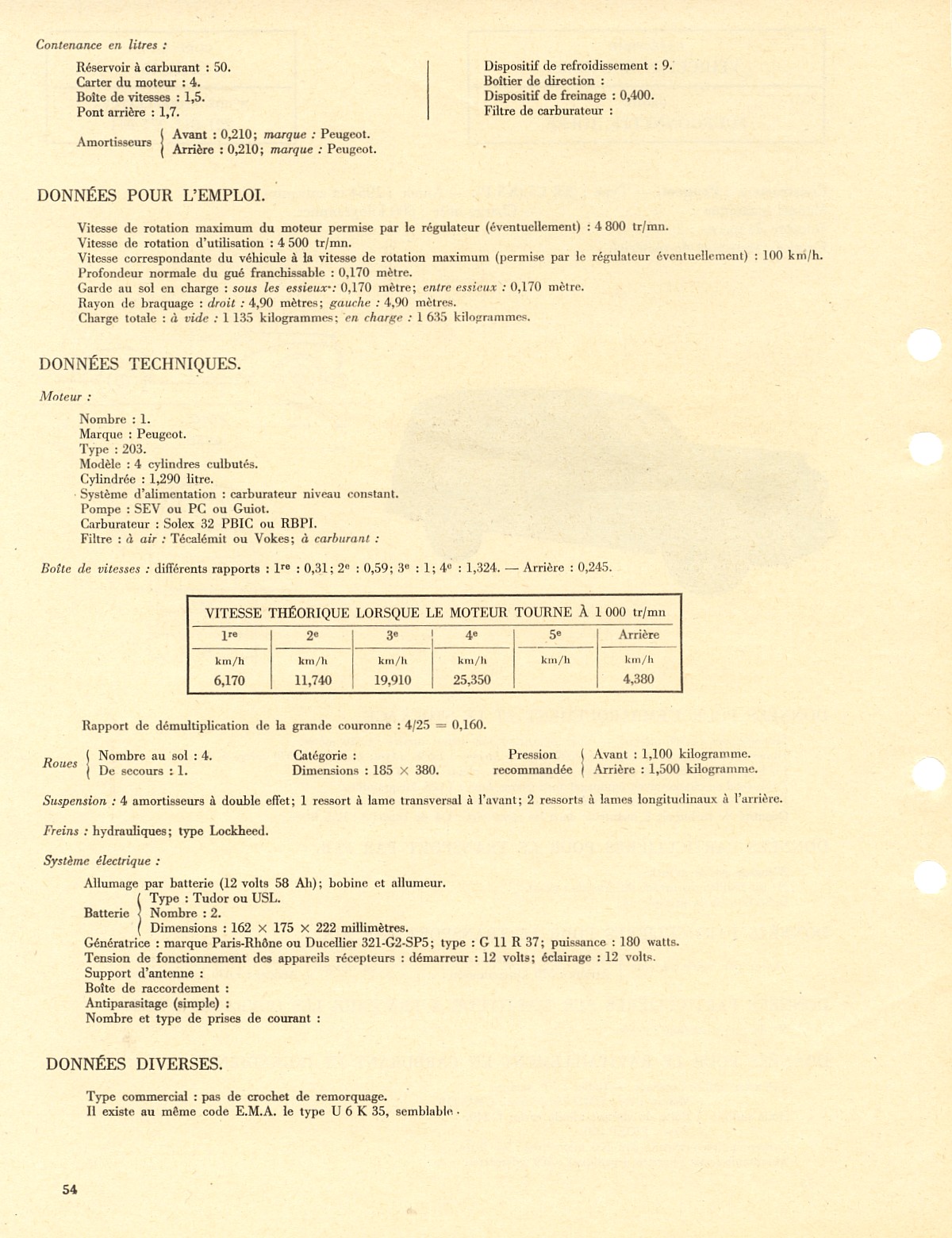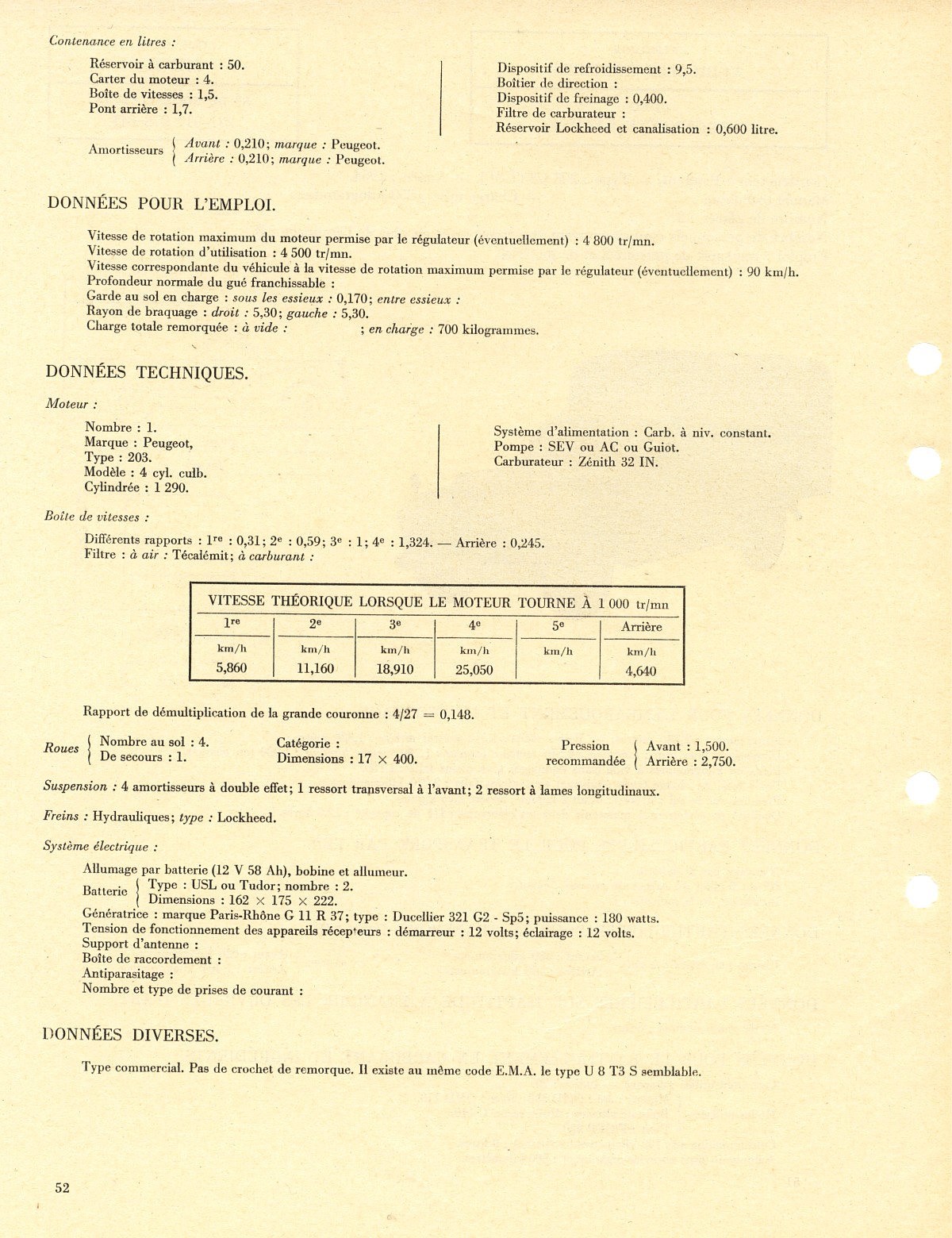| Documentations techniques | Publicités d'époque | La 203 dans l'Armée | Les accessoires |