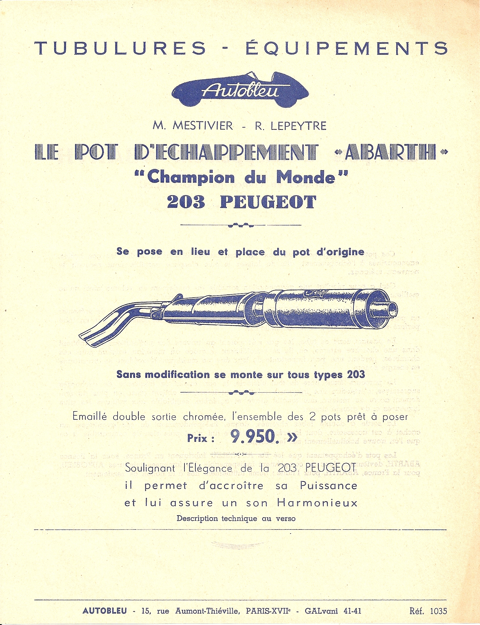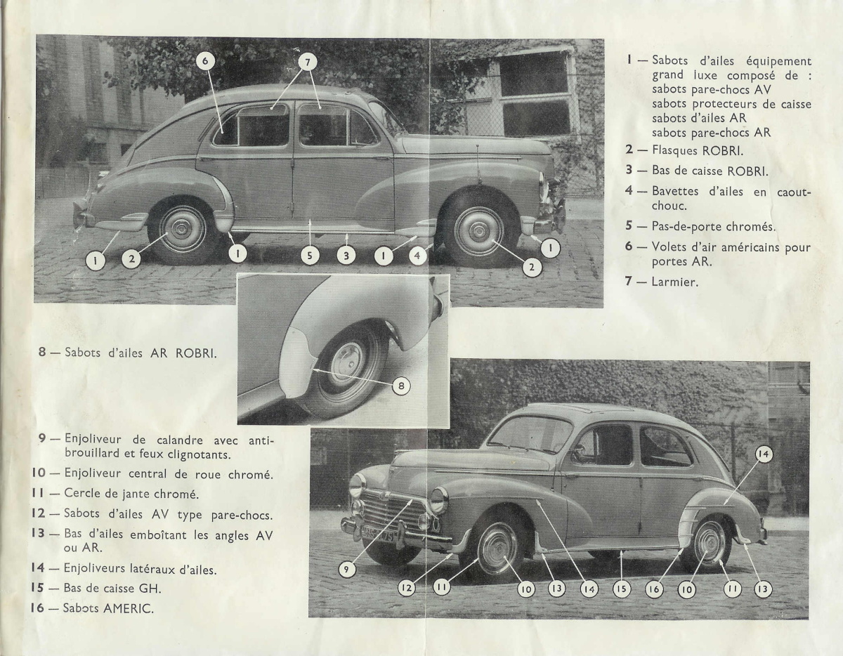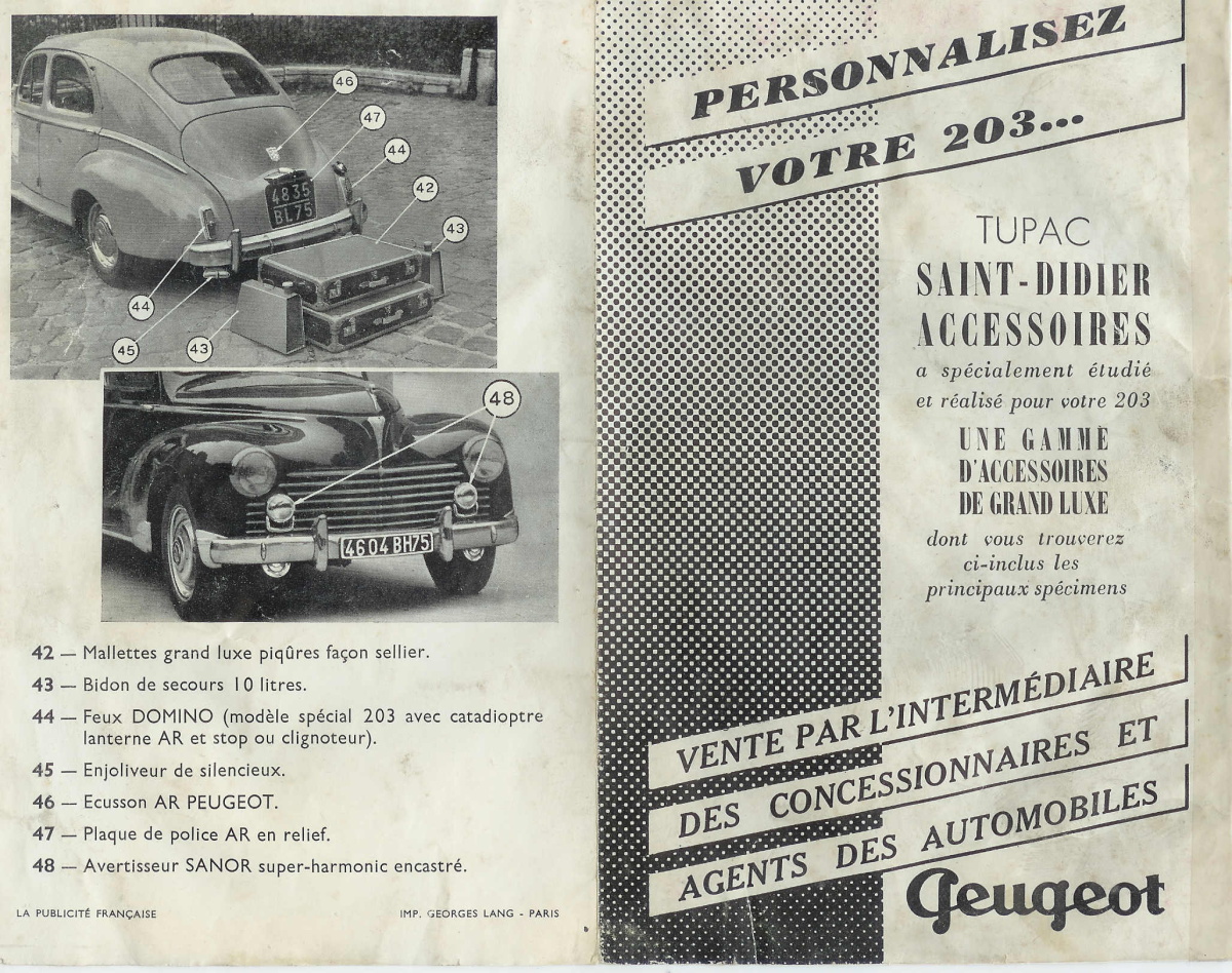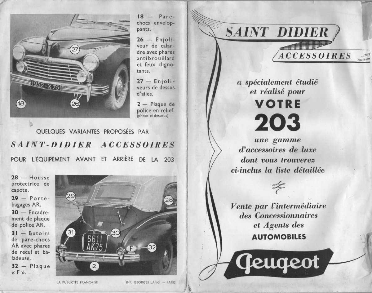 Grâce à l'aimable concours de , vous trouverez ci-dessous la reproduction d'un catalogue de la marque St-Didier datant de 1952, listant les accessoires disponibles pour la 203 chez ce fabriquant.